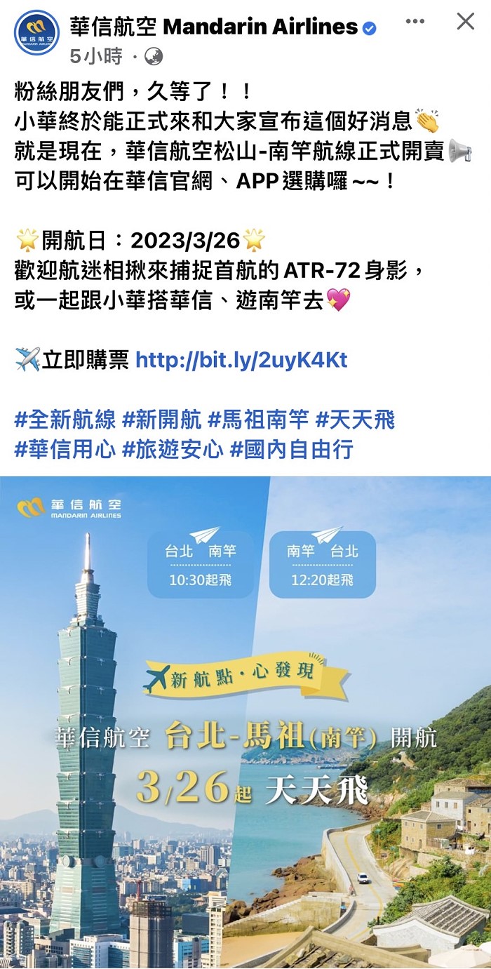 由華信航空 Mandarin Airlines 發佈於 2023年3月7日 星期二