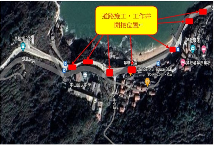 2.施工地點:北竿鄉中山國中門口至芹壁村出村口路段