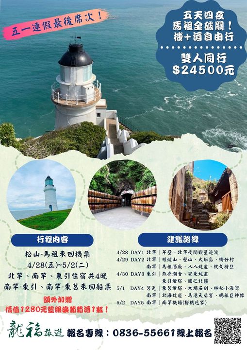 【五天四夜~馬祖全破關!機加酒專案】