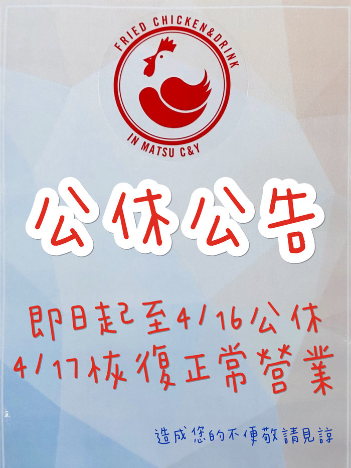 C&Y炸雞飲料專賣店公休公告