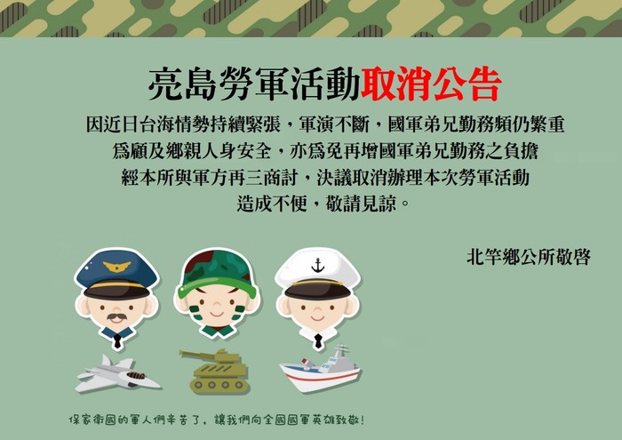 北竿鄉112年亮島勞軍活動取消公告
