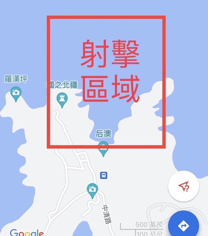 各位鄉親大家好,因應敵情威脅,為強化官兵突發狀況處置,東引指揮部預於4月20日「0900時至1300時」於圖上區域(后澳週邊海域)實施手榴彈投擲實彈訓練,投擲武器、方向角度均有完成規劃,同時也會避開船隻及飛機進出(或通過)在安全無虞下實施,請鄉親放心,造成鄉親不便,敬請見諒。