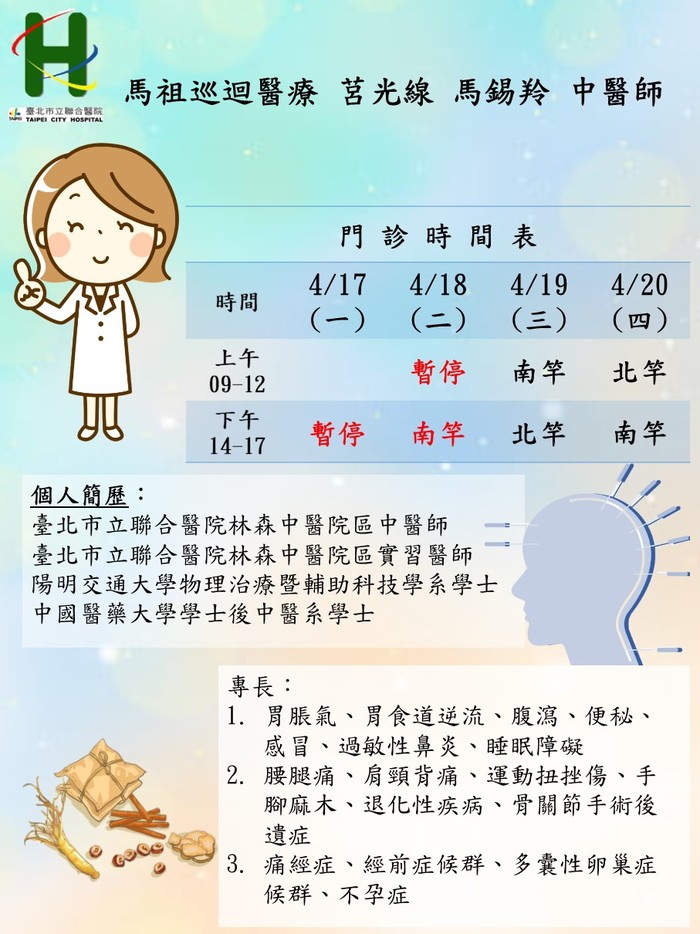 4/17(一) 上午 北竿衛生所,暫停看診。