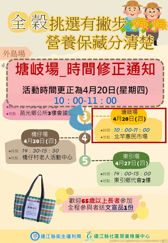 「全穀挑選有撇步,營養保藏分清楚」課程北竿場就在明天