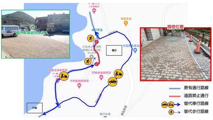 欲從開心農場通行至村內之民眾遊客,請改由環島北路行駛。