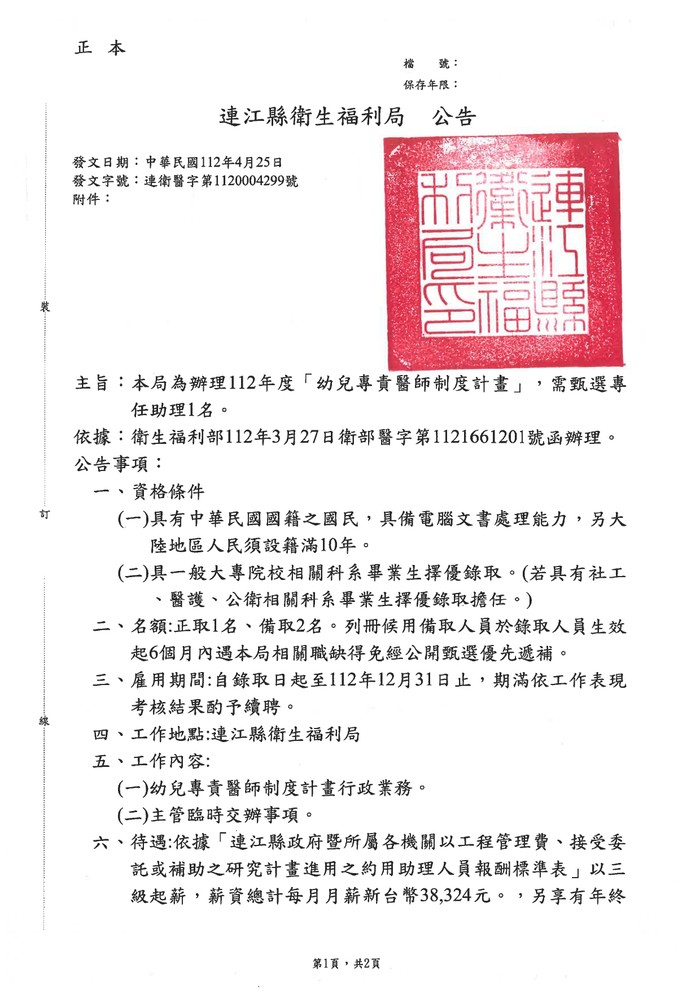 衛福局招募112年幼兒專責醫師制度計畫專任助理