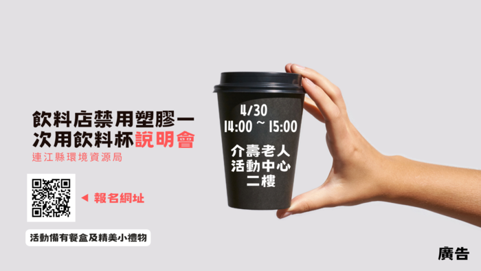 連江縣無論是觀光旅遊或小吃美食都很興盛,但這些特點也導致一次用產品的使用量大,在國際減塑的趨勢下,塑膠飲料杯的禁用勢在必行,期許轄內飲料店家、攤商一同配合,消費者也盡量自備可重覆使用之飲料杯,降低本縣一次用塑膠垃圾的廢棄量。