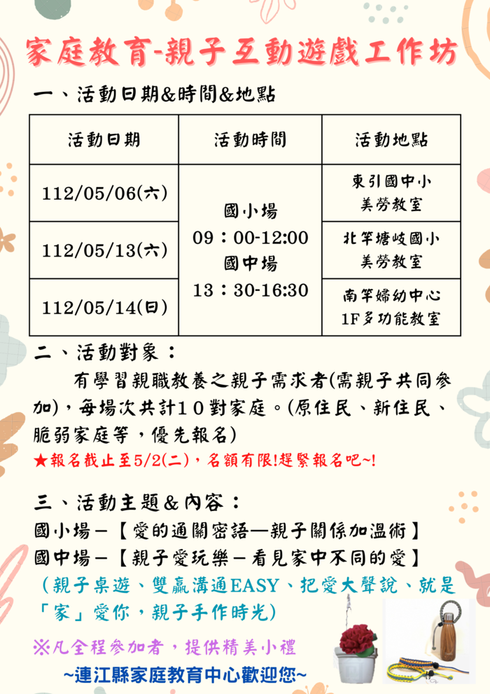 活動地點:南竿婦幼中心1樓多功能教室