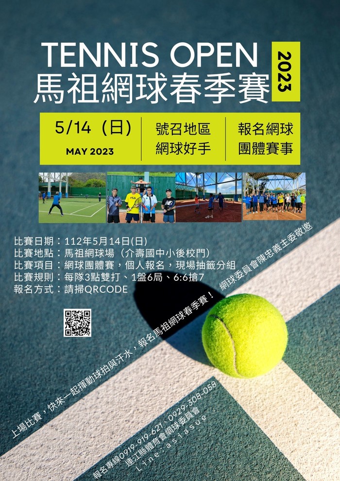 5/14(日)比賽,歡迎地區好手報名網球春季賽事