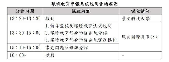 當天會再協助各單位業務人員對環境教育終身學習網系統申報的熟悉度