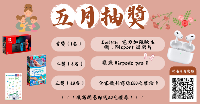 台大動態民意研究計畫 五月抽獎進行中 --閱讀人次 : 825 「五月抽獎」來啦!!!