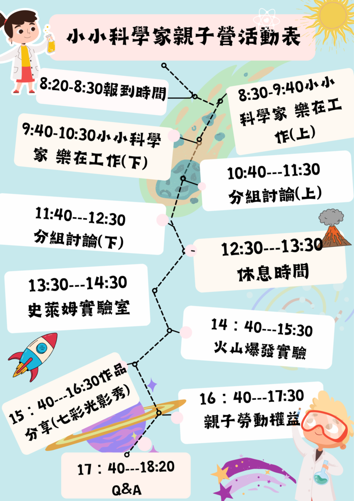 一、活動日期與時間:【小小科學家職業體驗營】112年5月21日(日)上午8:30報到。