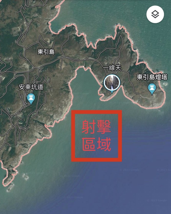 各位鄉親大家好,因應中共敵情威脅,為強化官兵突發狀況處置,東引指揮部訂於明(20)日「上午0800時至1130時」於圖上區域(德威營區至大紫澳週邊海域)實施對空射擊,請周遭船隻、各式航空器及釣客避免進入射擊區域,以確維安全,造成鄉親不便,敬請見諒。