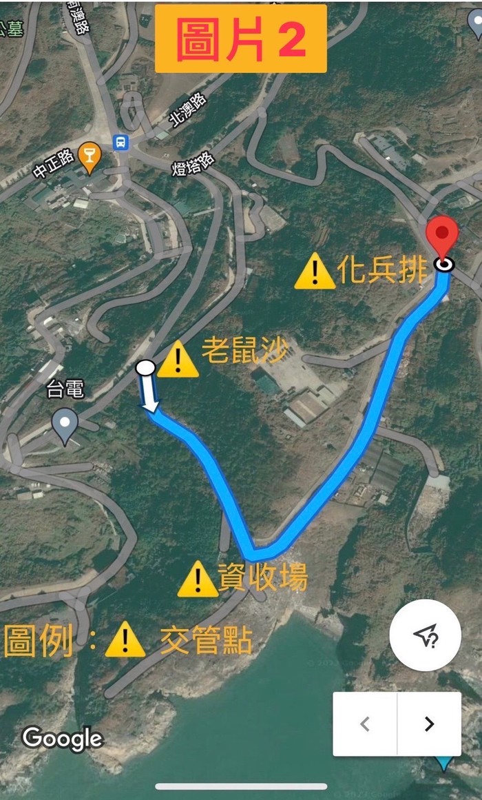老鼠沙入口處、化兵排下坡處、資收場。