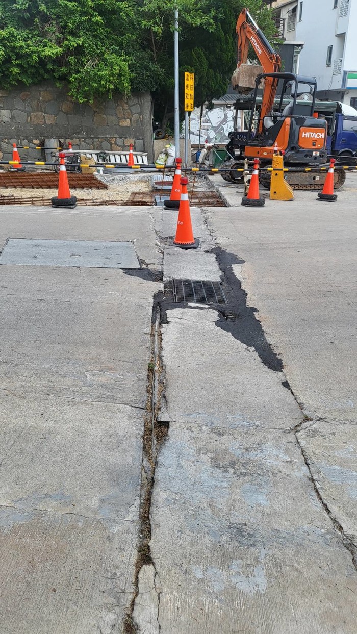 濱海大道清水路口處路面因受載重車輛重覆輾壓,造成該處截水溝頂版破洞,由於路口處目前因排水溝改善工程半線封閉,本處已請施工廠商至現場設置交維設施,並以瀝青緊急修補,請行經此處之車輛減速慢行,不便之處敬請見諒。