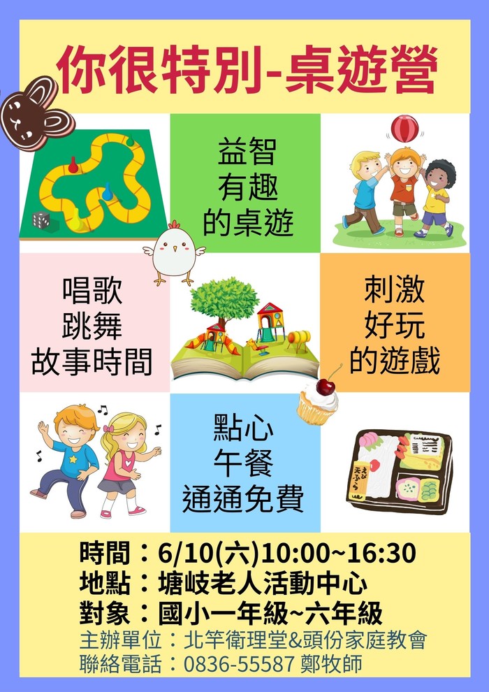 你很特別-兒童桌遊營(免費) --閱讀人次 : 967 你很特別-桌遊營(免費)
