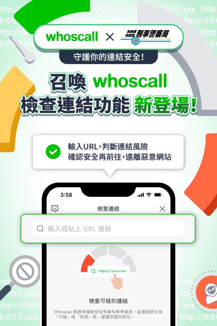 請重新查公司、單位的官方電話或撥打110或165詢問,也可參考Whoscall最新版本,點選APP內「檢查連結」並複製貼上陌生連結,即可幫忙檢查