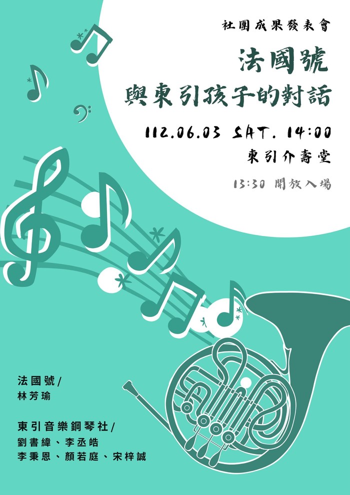 一場由東引國中鋼琴社學生以及法國號家林芳瑜聯合音樂會。歡迎來給這群孩子從0到0.1這段奮鬥史一個愛的鼓勵。
