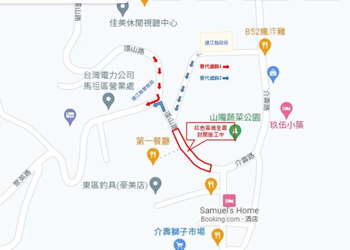 本公司於112年06月01日至6月20日 在南竿鄉介壽堂管線遷移工程道路施工8:00~18:00封閉全線,請行駛該路段車輛注意安全, 施工期間造成不便敬請見諒.