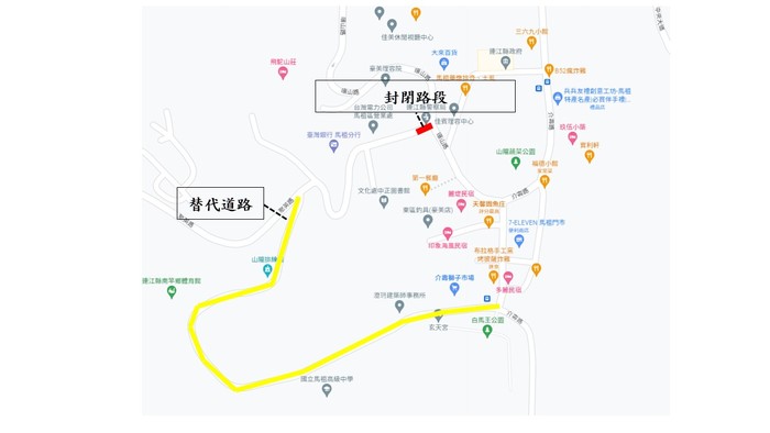 工程施作期間,因需道路封閉,請前往臺銀及警局之居民及用路人繞道體育館聚英路,造成不便,敬請諒解。如有疑問,請撥打本局資源管理科(0836)26520#121楊先生或設計及監造廠商:旭美工程顧問有限公司0988880550林先生,承攬廠商:宏旗營造有限公司0921136475曹先生詢問。