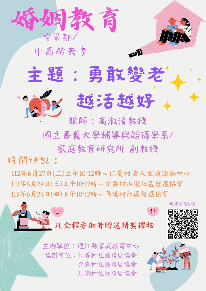 連江縣政府家庭教育中心112年度舉辦空巢期/中高齡婚姻教育