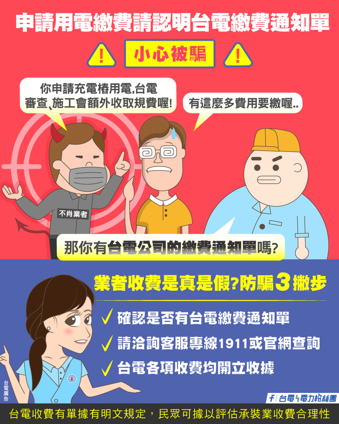 繳費後也會提供 「繳費憑證或收據」 台電絕無任何額外費用業者收費是真是假 !!!防騙3撇步!!!