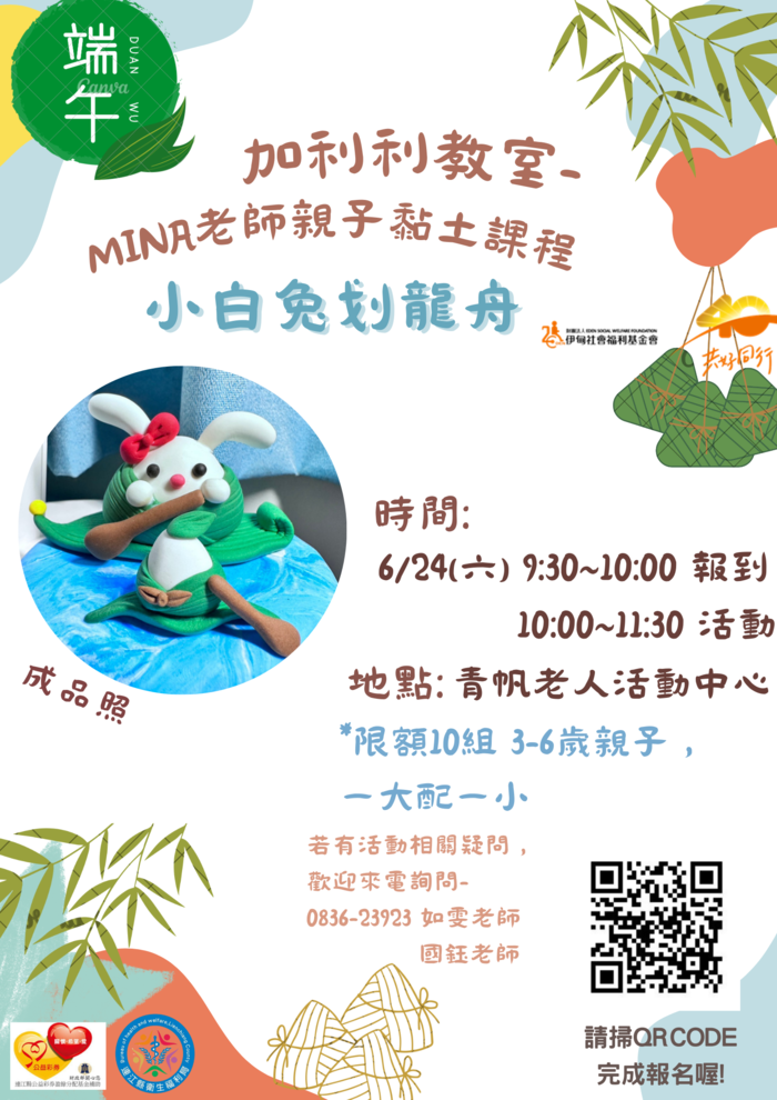 活動名稱 : 親子黏土課程-小白兔划龍舟