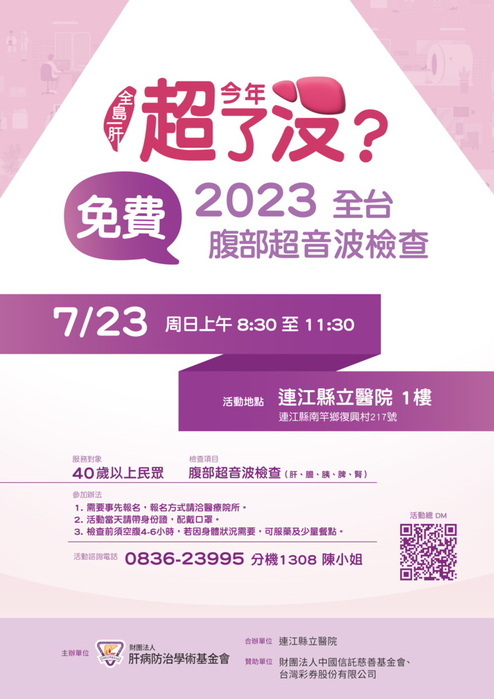 世界肝炎日全民超音波活動(已額滿) --閱讀人次 : 808 已報名額滿,不再受理報名