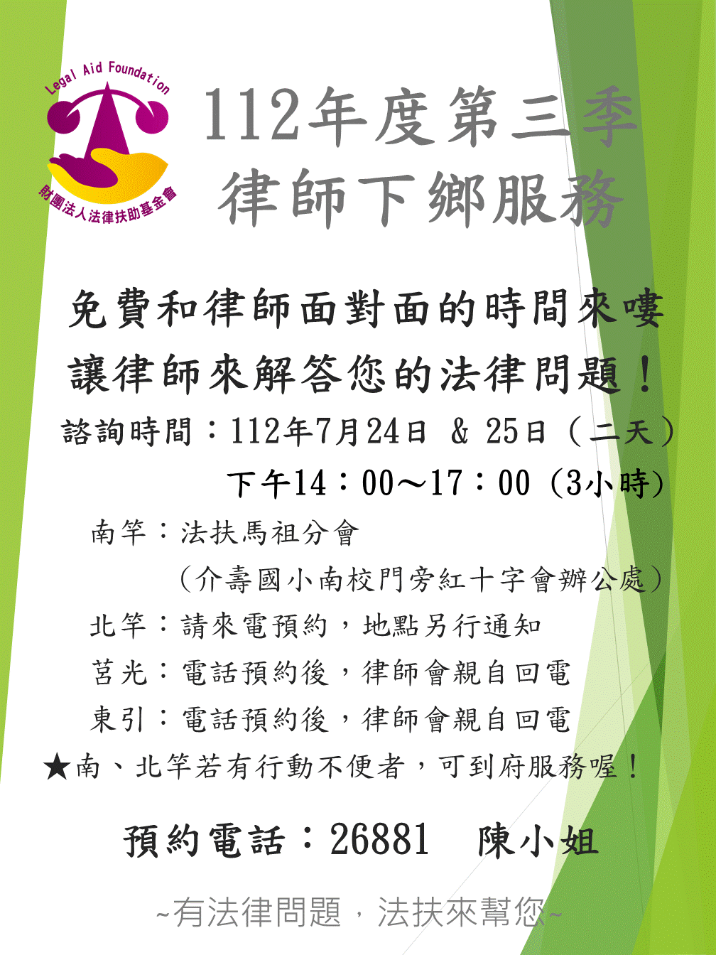 ★律師連續兩天的現場服務,有需要的民眾請把握喔!