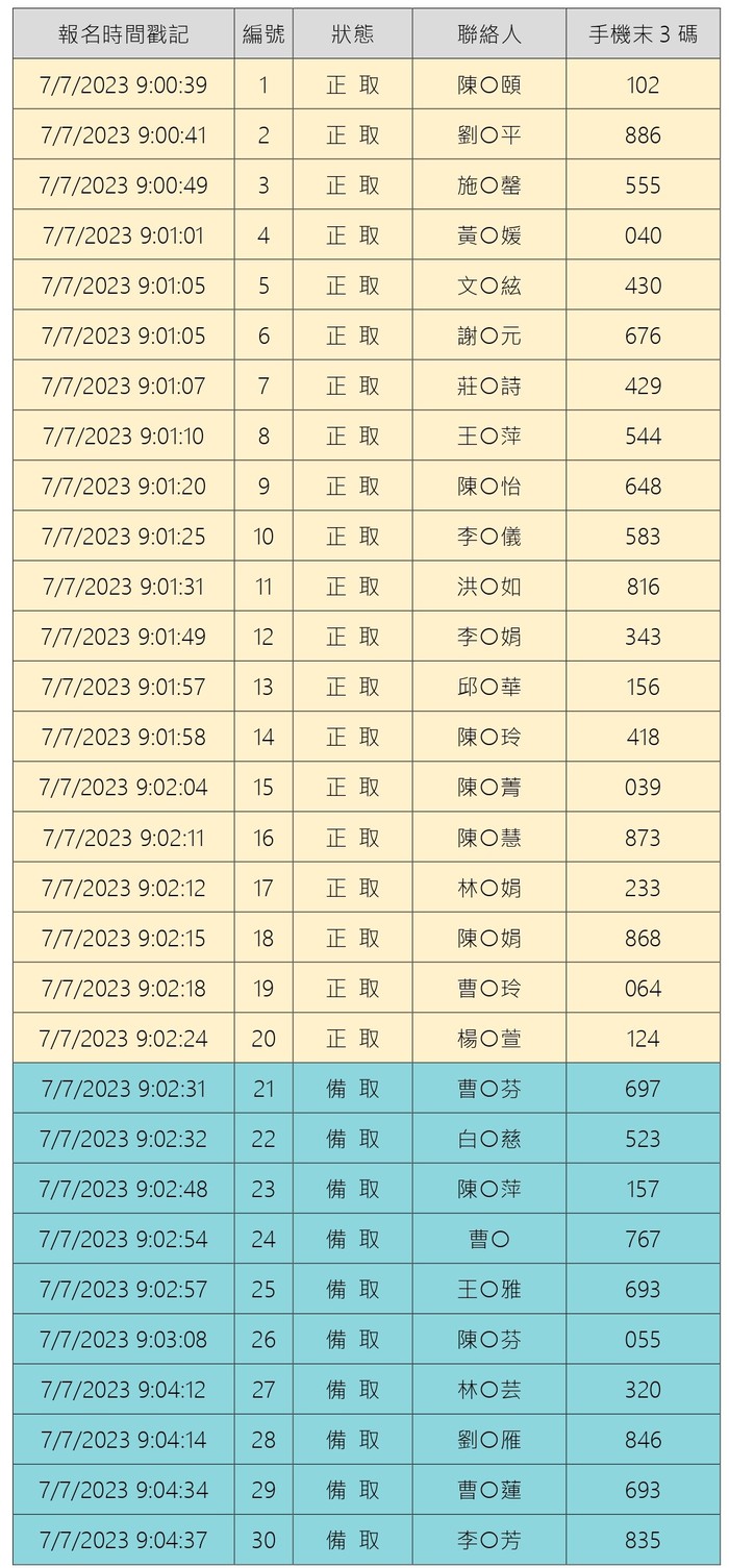 感謝大家踴躍報名,截至7/7 上午09:04 報名即額滿