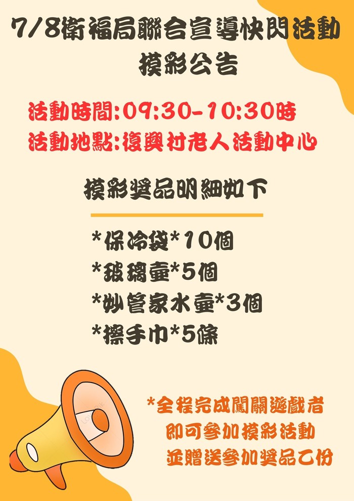 7/8衛福局聯合宣導快閃活動摸彩公告