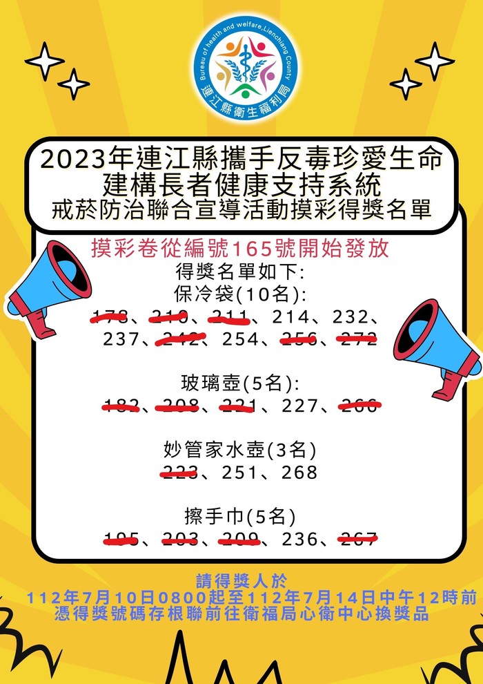 7/8衛福局聯合宣導活動摸彩得獎名單