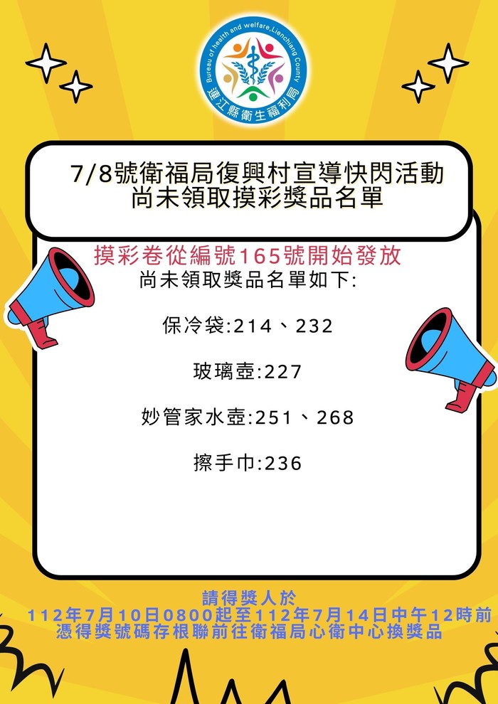7/8衛福局聯合宣導活動摸彩得獎名單