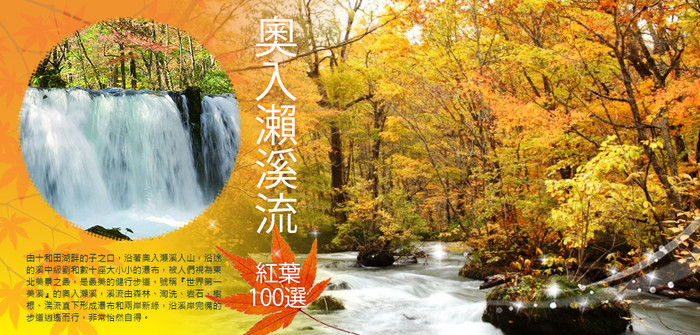 EZFLY~秋紅之美東北5日 --閱讀人次 : 553 奧入瀨溪流嚴美溪猊鼻溪三溪楓紅、東北採果樂、壯麗八甲田三段染、十和田湖松島灣雙遊船