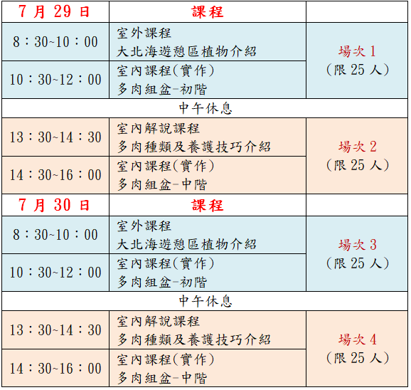 活動日期:7/29、30,上下午共4場課程。詳見課程表。