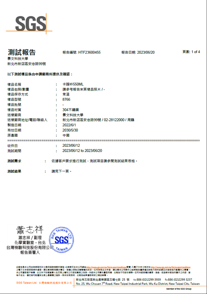 馬祖卡蹓杯SGS送檢結果無異常 --閱讀人次 : 797