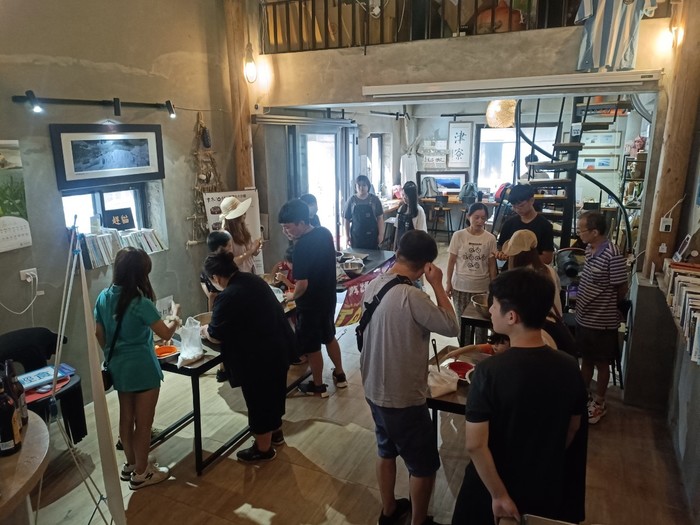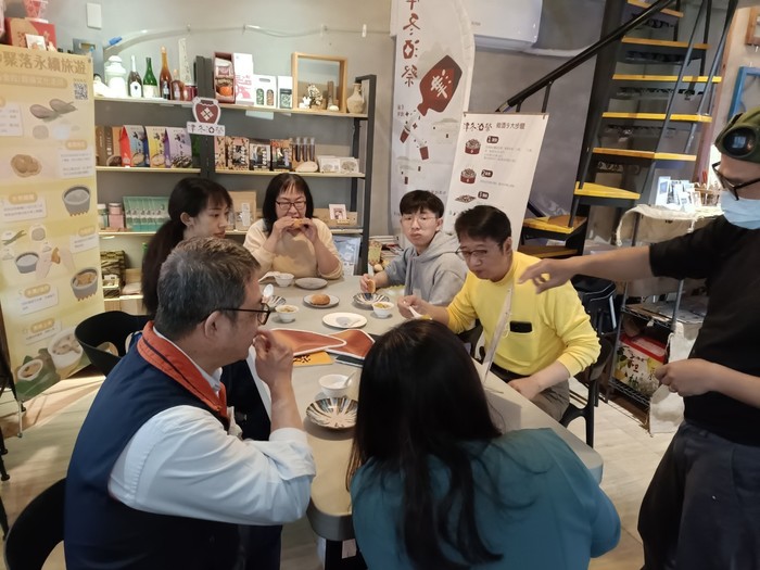 一邊享用自己做的黃金餃點心,透過指導員的引導,大家分享今日的感受和心得,再次感受人與聚落、人與環境的關係,引發學員的反思和策略發想,以達推動永續旅遊的目標。
