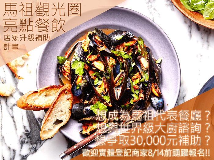 亮點店家輔導在地餐飲業者招募 補助3萬 --閱讀人次 : 1023 112年馬祖觀光圈產業創新及亮點提升計畫