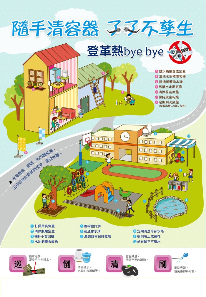 目前正值登革熱流行期,暑假期間民眾往來台灣本島頻繁,且近日颱風挾帶豐沛雨量,易積水或環境中積水容器增加,加上氣溫炎熱,有利於病媒蚊孳生及疾病傳播登革熱流行風險,請民眾於下雨後務必落實「巡、倒、清、刷」減少病媒蚊孳生,連江縣環境資源局關心您。。