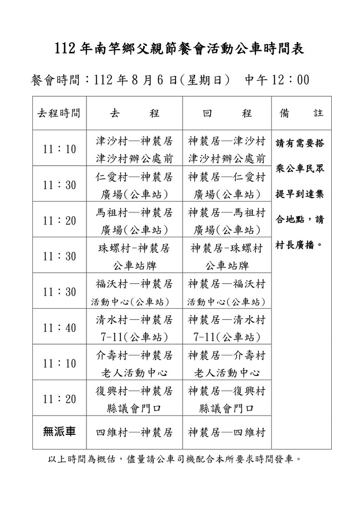 為慶祝112年父親節,南竿鄉公所訂於8月6日(星期日)中午12時假神辳居餐廳舉辦南竿鄉模範父親表揚典禮暨慶祝餐會活動,誠摯邀請設籍在南竿鄉的爸爸們一同參加。