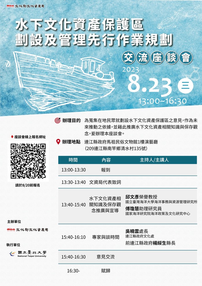 辦理地點:連江縣政府馬祖民俗文物館,1樓演藝廳(209連江縣南竿鄉清水村135號)