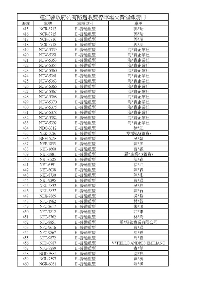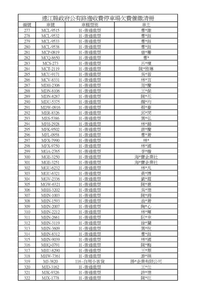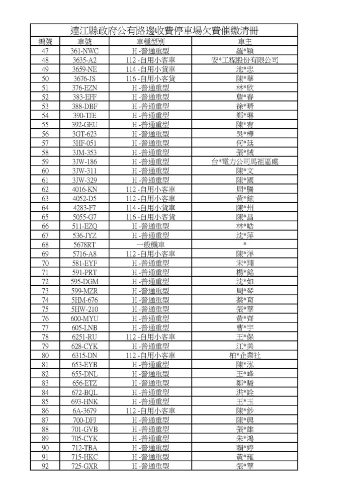 自8月16日起寄發催繳通知單限期繳費 --閱讀人次 : 966 自112年8月16日起寄發催繳通知單限期繳費、並加收工本費50元,如果民眾繼續欠款將依法處以300元之罰鍰、並追繳停車欠費。