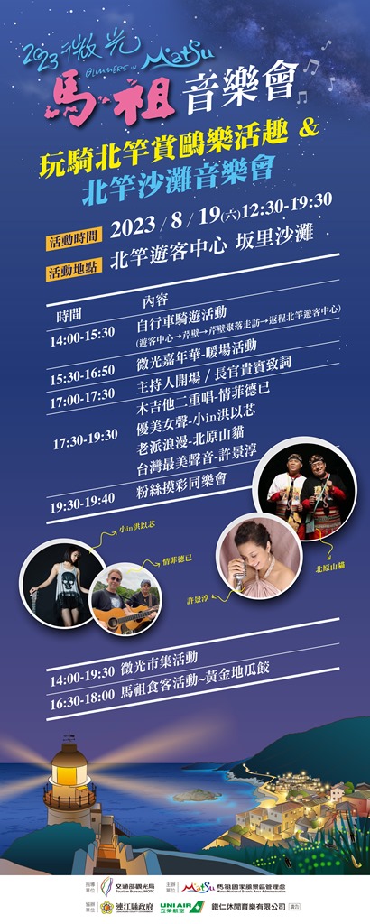 歡迎旅宿業者多多宣傳8/19 玩騎賞鷗樂活趣&北竿音樂會