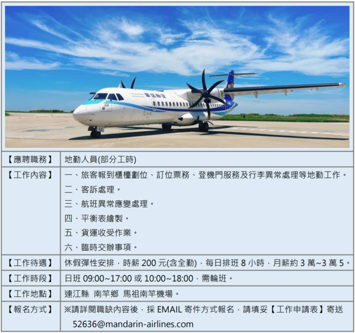 華信航空 南竿機場~徵才招募中