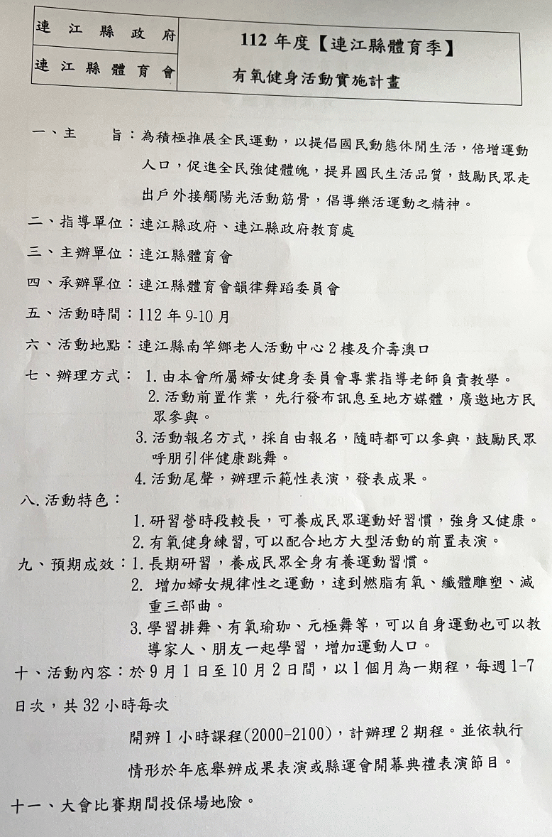 體育季有氧健身活動實施計畫公告