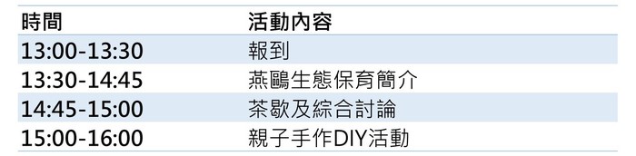 內容∣馬祖燕鷗生態簡介、研究保育現況、親子手做DIY活動