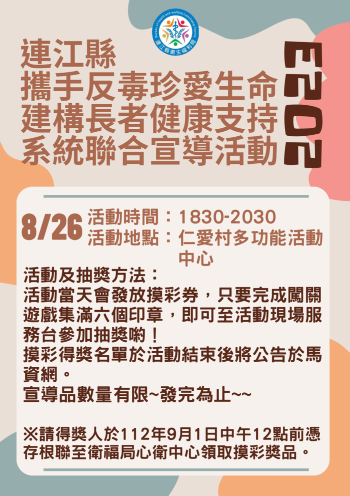 2023連江縣攜手反毒珍愛生命建構長者健康支持系統及戒菸聯合宣導活動於本週六開始呦~🥳