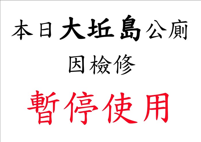 目前大坵島上公廁,因水源問題而正在進行檢修,無法使用。