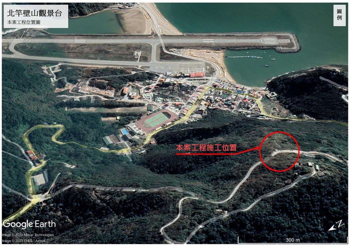 北竿壁山觀景平台整建工程,施工期間採半邊道路施工,另半邊道路採紅綠