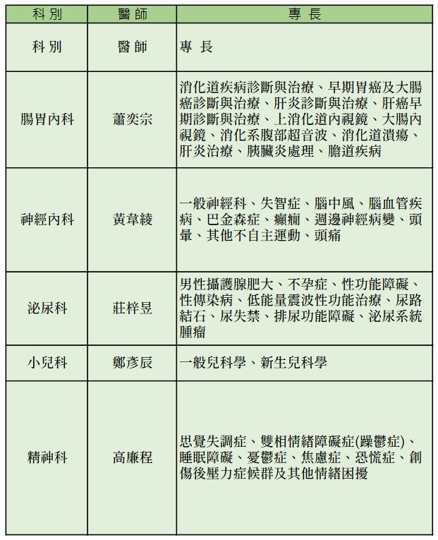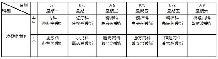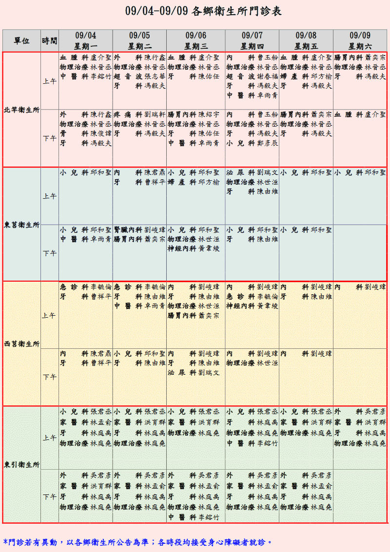 本週各衛生所門診表/遠距/支援醫師
